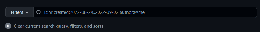 is:pr created:2022-08-29..2022-09-02 author:@me