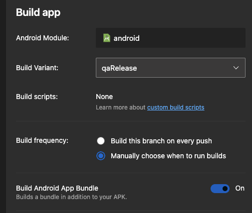 我也有同样的问题要为测试准备env,关闭应用程序包的切换,在我的例子中,只需要apk来测试捆绑开关关闭。