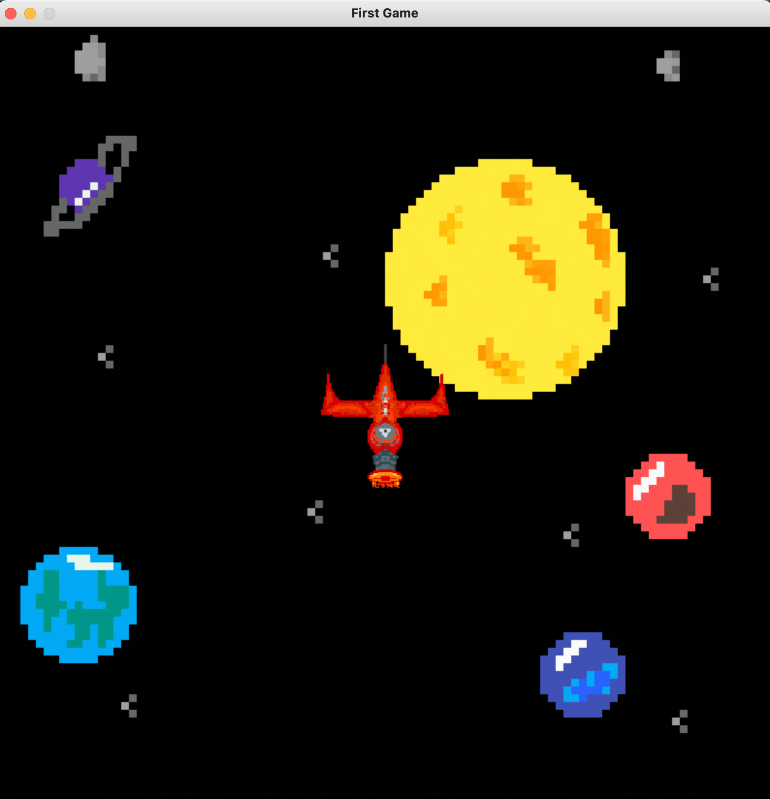 pygame.quit()这有左/右/上/下的基本运动。我想要做的是让我的StarShip对象在变量starship_1、starship_2、starship_3 (其中包含我的3个星际飞船)之间不断变化,所以看起来星际飞船在运动。