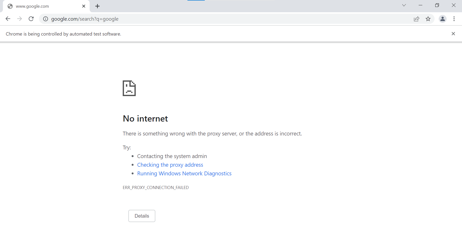 driver.get("https://some_url.com")浏览器实例确实打开,但由于网络错误而失败。浏览器实例不会在已建立的URL中加载。