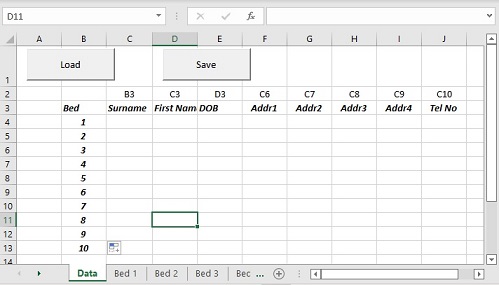 负荷将填充来自床表的数据表。重新分配B栏中的床位并保存回表格。我已经包括了基本的错误和验证检查,并在加载后备份保存,以增加安全性。