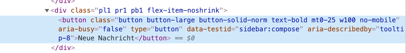 <button class="button button-large button-solid-norm text-bold mt0-25 w100 no-mobile" aria-busy="false" type="button" data-testid="sidebar:compose" aria-describedby="tooltip-8">Neue Nachricht</button>
