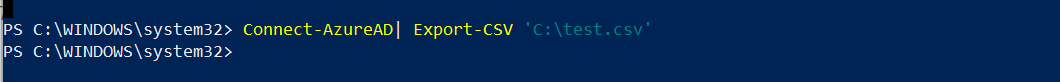 Connect-AzureAD| Export-CSV 'C:\test.csv'