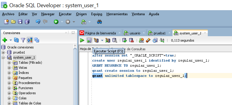 grant unlimited tablespace to regular_user_1;