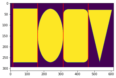 我想用这样的方式分割图像,每一个符号都被垂直分割,就像这个输入图像: