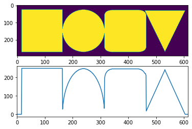 arr = (np.array(img)[:,:,:-1].sum(axis=-1)==0)如果我们对每一列的行值进行求和,我们就可以得到每个列填充多少像素的简单和: