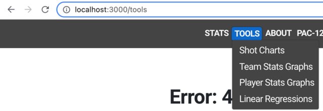 在上面的屏幕截图中,单击Tools路由到/tools,然后单击下拉选项应该链接到/tools/shot-charts、/tools/team-stats-graphs等。您可以在下面的代码中看到这一点: