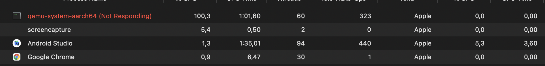 今天,我得到了我的新的MacBook临2021 14英寸与M1专业芯片。我在互联网上搜索了Android的正确安装指南。这是非常好的工作,但仿真器根本不工作。每次我想启动一个模拟器时,它都卡在“连接到仿真程序”屏幕上。
