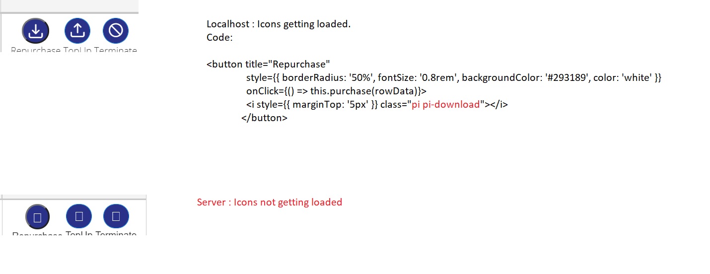 我试图在我的反应应用程序中使用原始图标,图标在本地环境中被成功加载,然而,当部署在没有互联网的服务器上时,图标却没有加载。