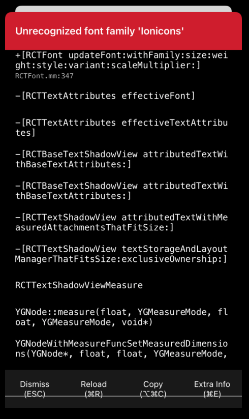 我得到了一个错误Unrecognized font family 'Ionicons'