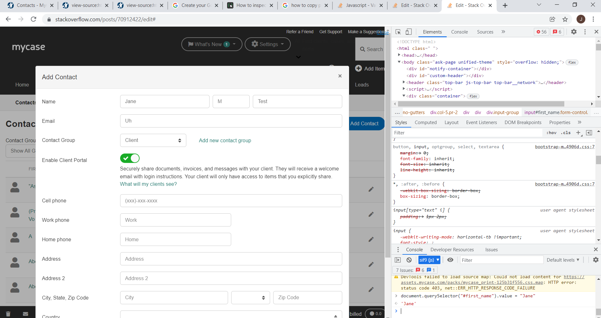 document.querySelector("#first_name").value = "Jane"我已经在有问题的案例管理网站和通用Gmail帐户创建页面上测试了这段代码。