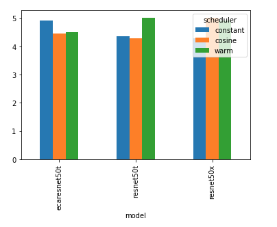 9 seresnet50 warm 4.202我试过一些像(df.groupby(['model','scheduler'])['mae'].plot.bar())这样的东西,但它不起作用