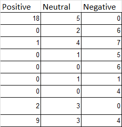 我有正面、负面和中性事件计数的数据。例如:8(正)、5(负)和1(中性)。
