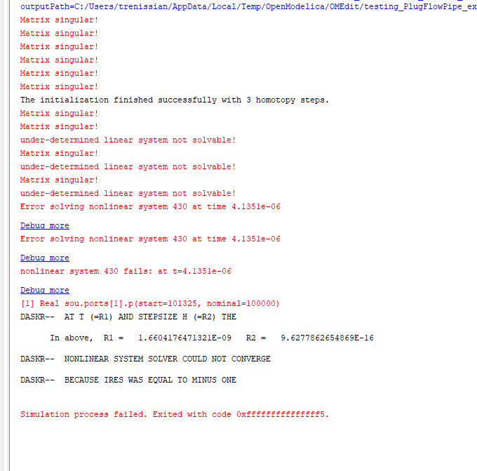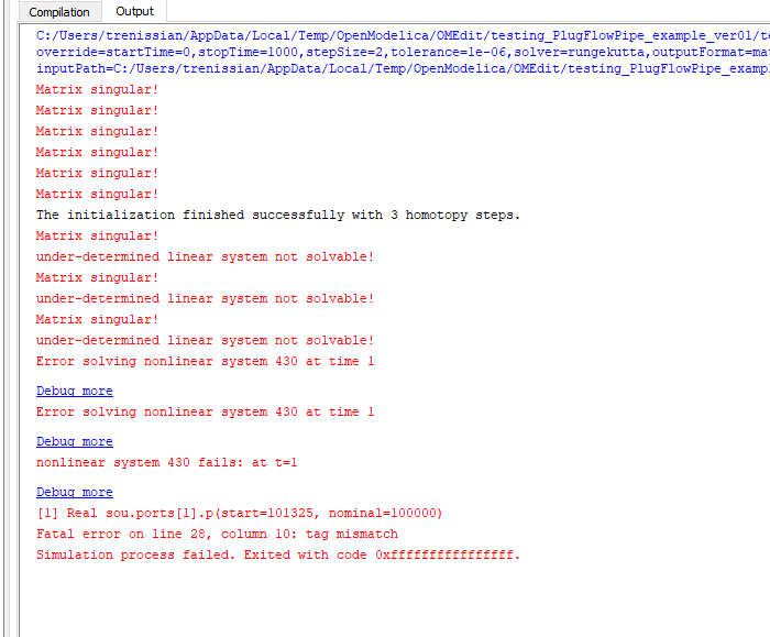 在默认情况下,modelica不包括支持多种物质和痕量物质的介质模型。因此,我把一个介质模型和基本的Modelica流体组件(源、开罐、静态管道)结合在一起。然而,建筑物库的组件Buildings.Fluid.FixedResistances.PlugFlowPipe似乎是有问题的,我不知道为什么?我在OpenModelica方面的经验非常有限,如果有人能帮我指出理由,我会很感激的。