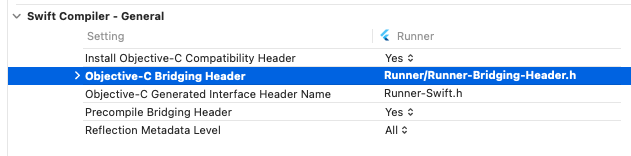 我正在尝试将IronSource SDK集成到一个iOS颤振项目(Swift项目)中,但我无法做到这一点。根据IronSource文档,我必须指向IronSource.h文件来包含我需要的桥。我能够在普通的Xcode快速项目中实现它,但是我不能在颤振项目中实现它,因为这个桥已经被颤振所使用,而且它只能是一个文件。