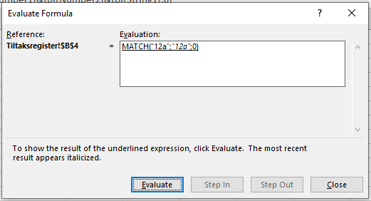 在计算公式时,它看起来很好,但Excel似乎没有将第二个"12a“识别为数组: