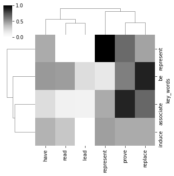 一种选择是将key_words列设置为索引,并使用seaborn.clustermap绘制集群: