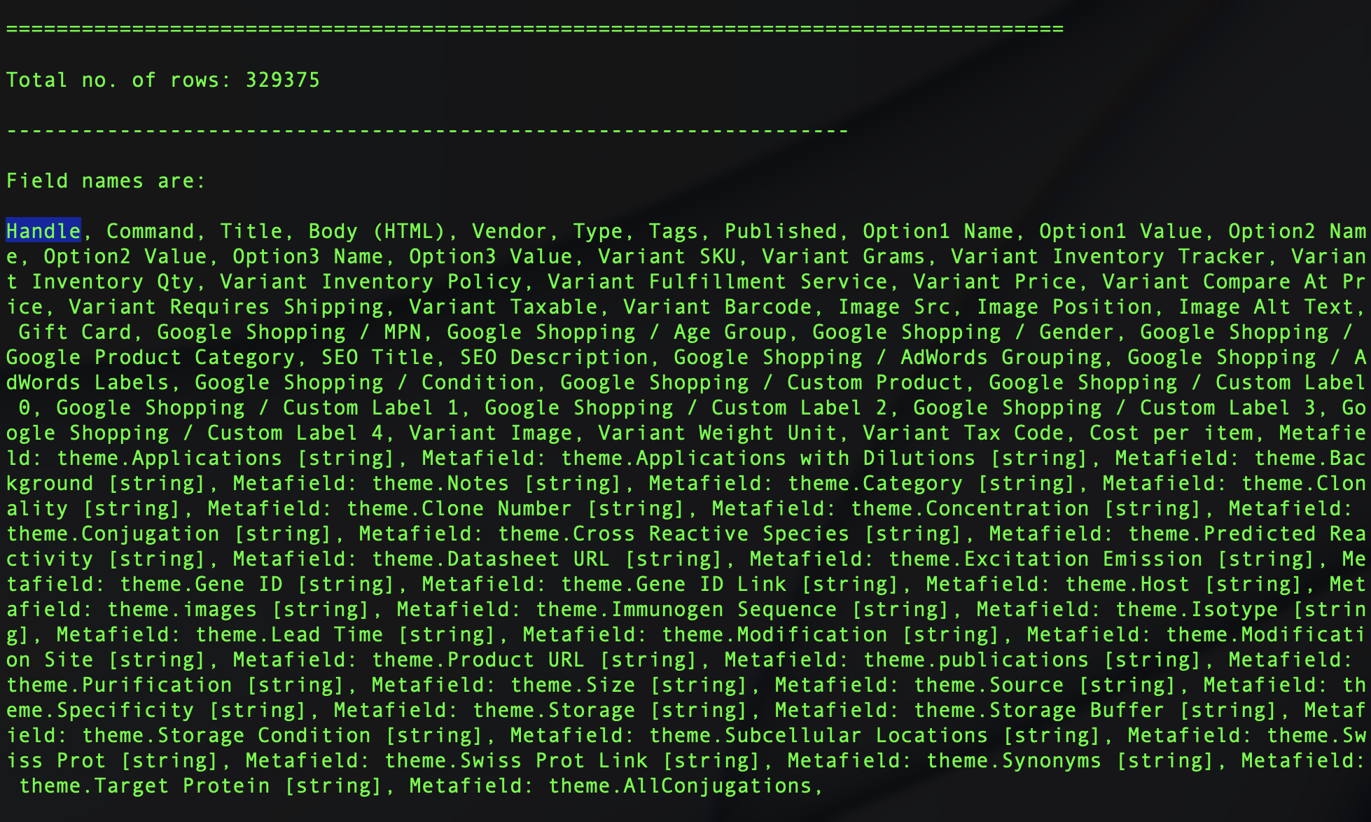 keepColumns = ['Handle']