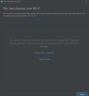 我现在收到的错误是“此系统不符合支持Wi配对的要求。请使用SDK管理器更新到最新版本的”平台工具“。