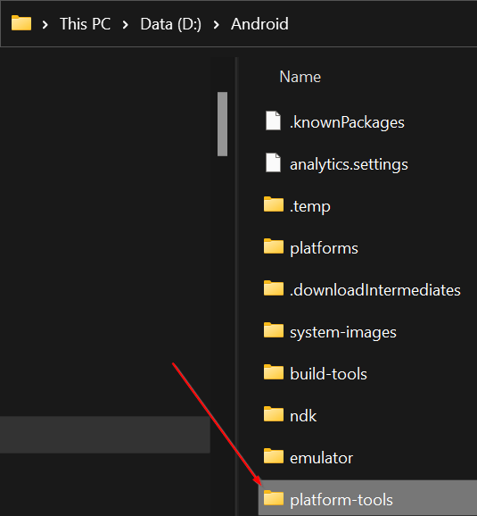 这个文件夹的内部应该是另一个叫做"platform-tools“的文件夹。