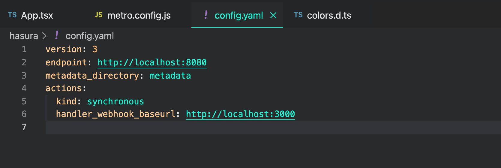 您可以在我的项目中看到我的Hasura配置文件和错误。