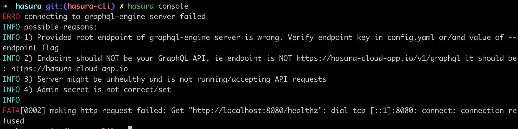 INFO 1) Provided root endpoint of graphql-engine server is wrong. Verify endpoint key in config.yaml or/and value of --endpoint flag