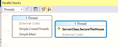 对于ref,这里是我在VS中所讲的例子,在VS中,多个线程的堆栈是可视化的: