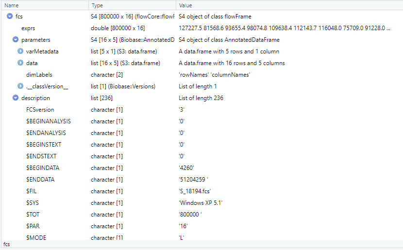 流式细胞术数据以.fcs文件格式提供。该文件在flowFrame结构生成器中使用flowCore包的read函数读取。我想在R中阅读它,如何将它转换成data.frame结构?