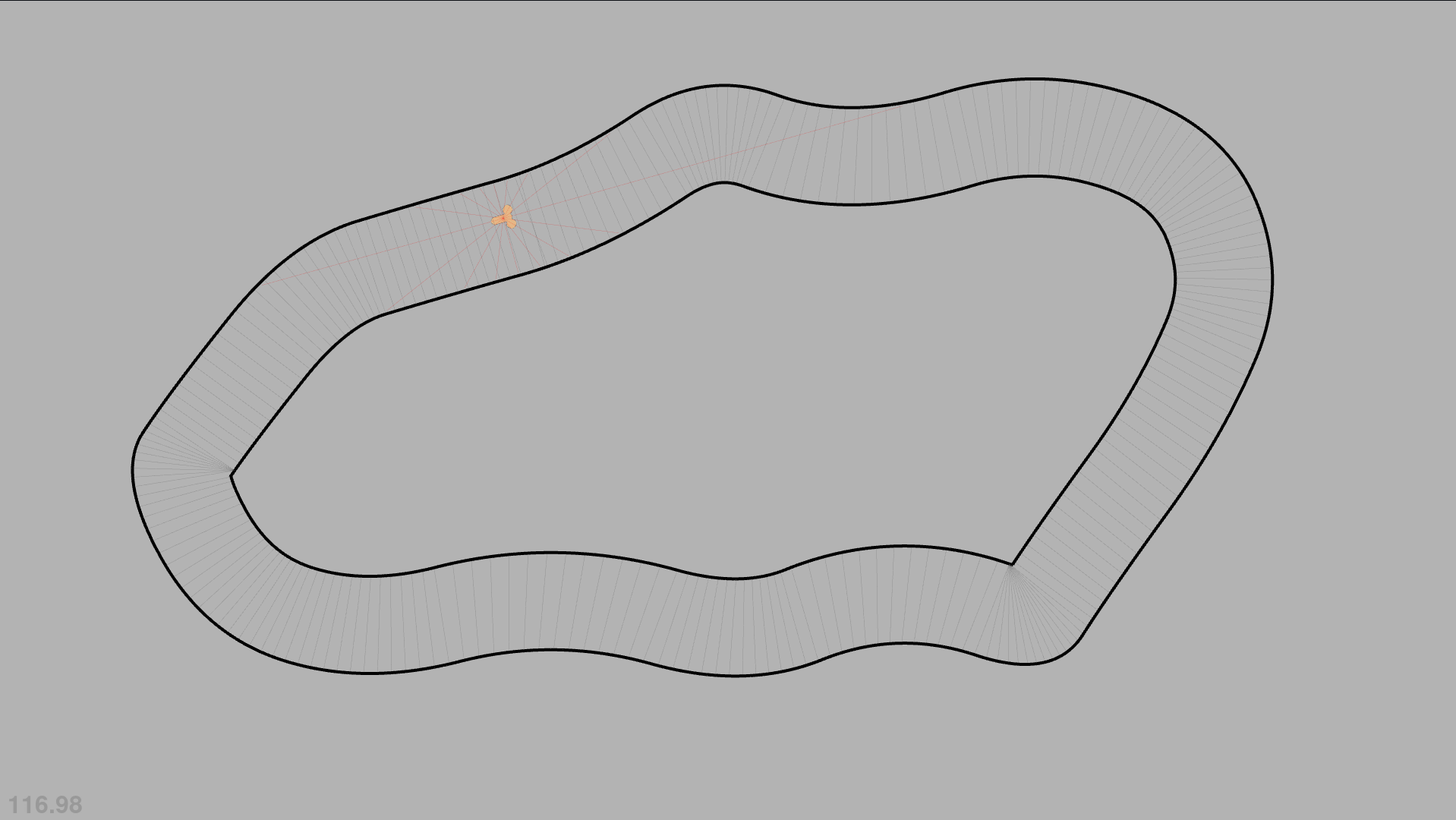我有一个XY点列表(trackP)的汽车轨道,我想“平滑”它。因为在pymunk (和其他物理引擎)中没有比polys (或片段)更复杂的形状,在我看来,我需要插值数据点,以删除尖锐的角.我怎么能这么做?我将需要这些知识,以产生“爬山赛车”赛道太(顺利的轨道,从设定的点)。目前我的跟踪(这是由seed生成的过程):跟踪