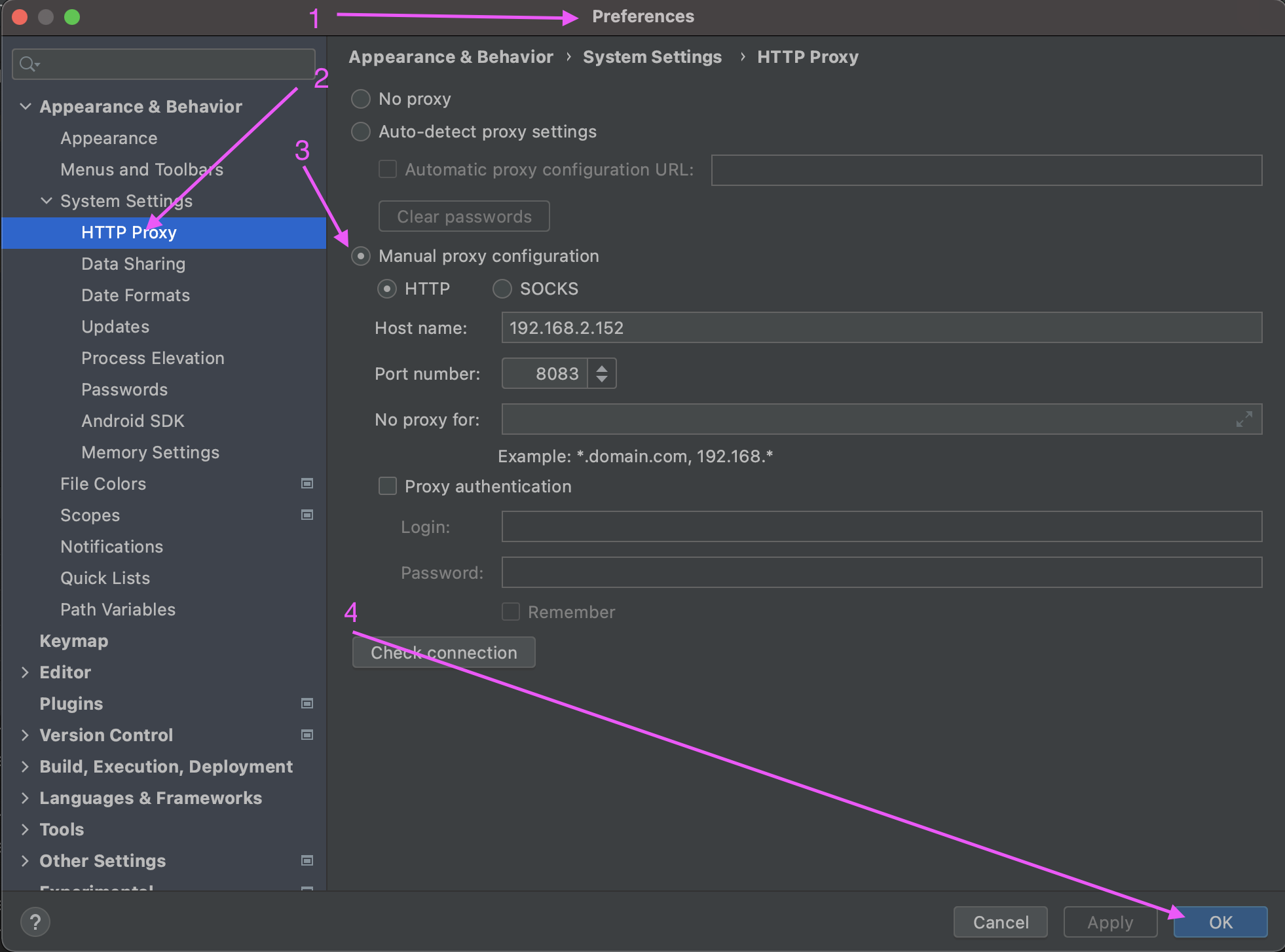 4. Click _HTTTP Proxy_ on the left panel