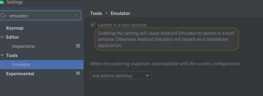 您可以在这里取消检查设置来打开旧的模拟器版本。