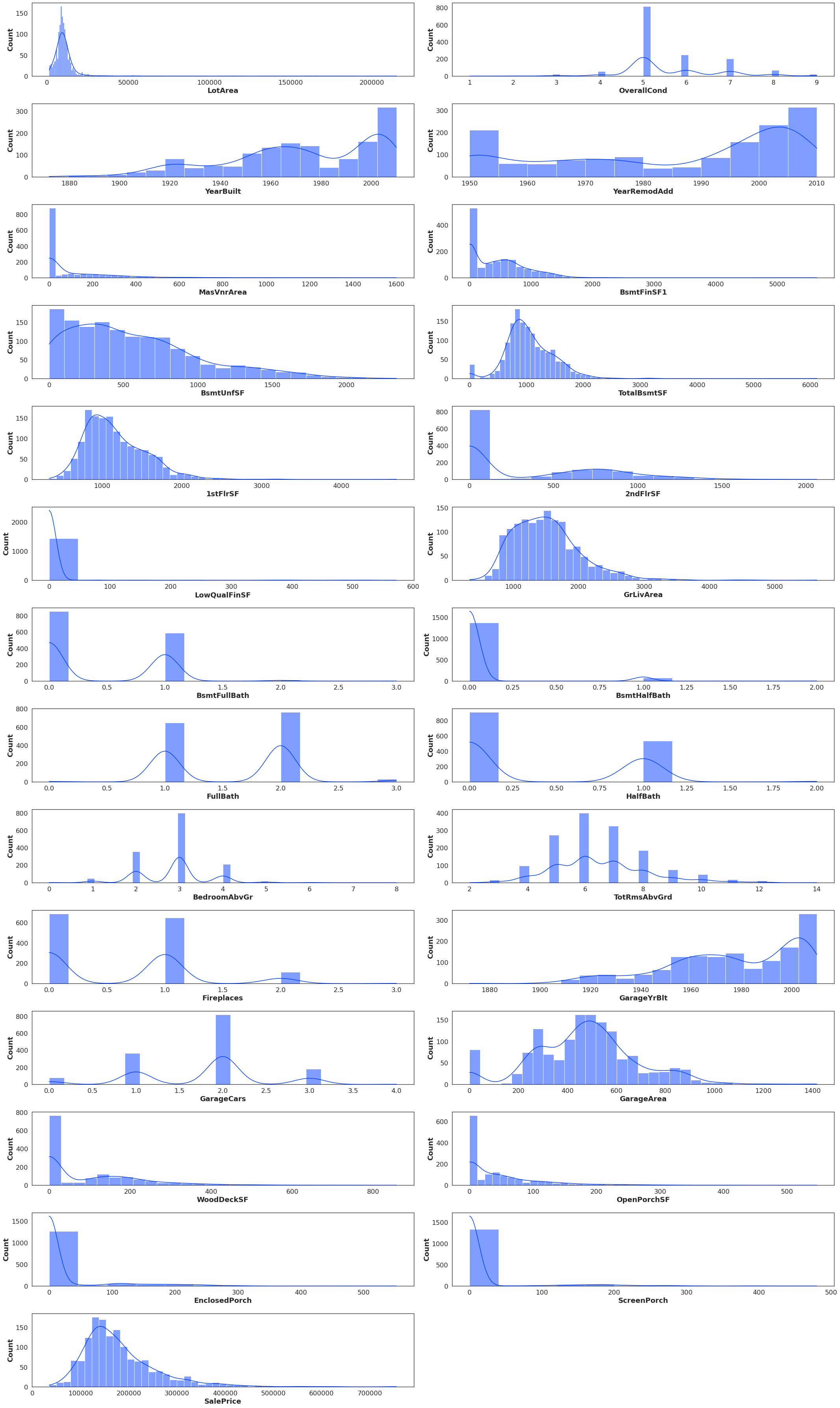 我通过删除空值、输入和删除列来清理和处理数据,并得到了一个带有(1458, 69)形状的dataframe (1458, 69)。
