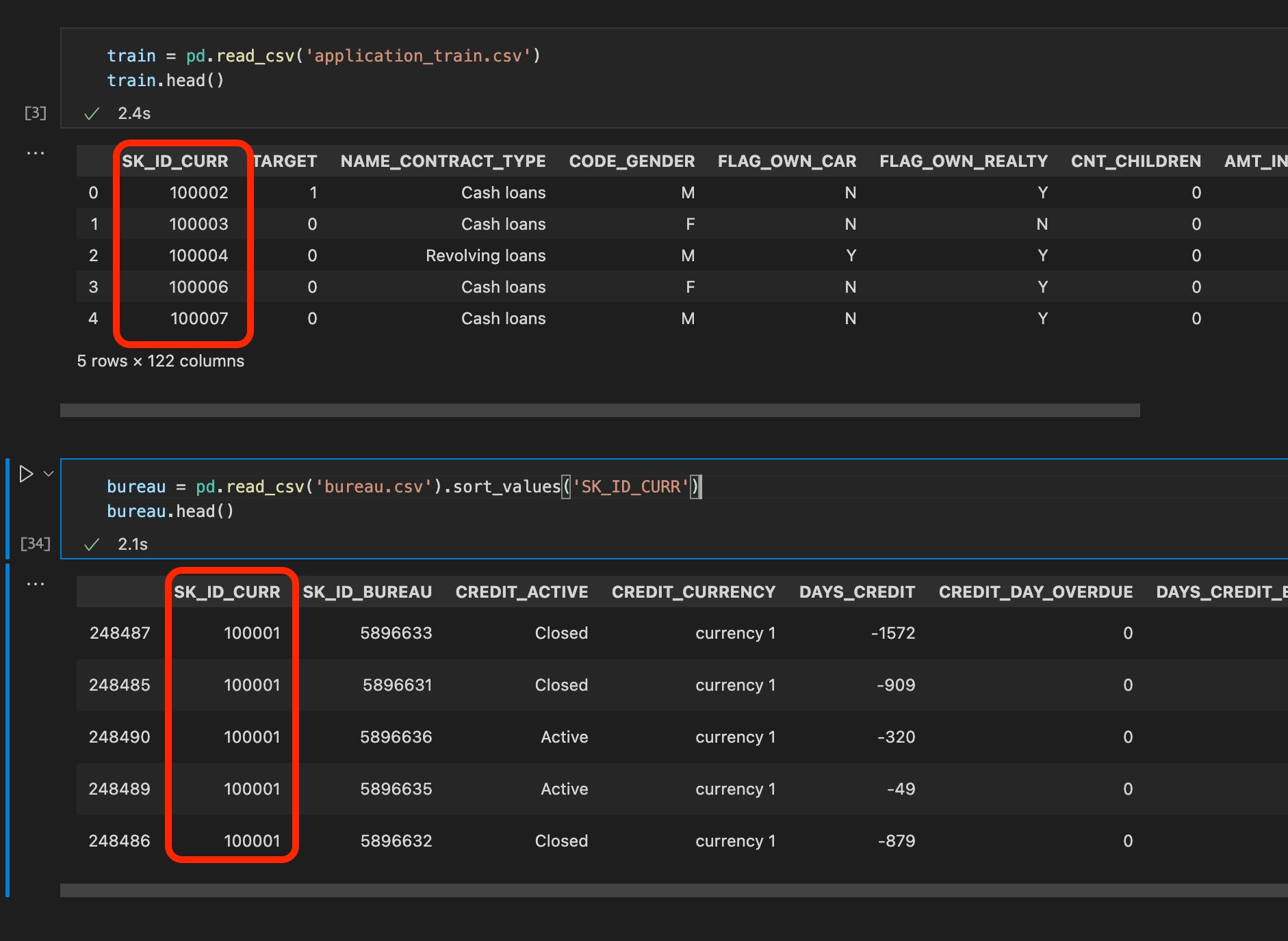 我正在用这是Kaggle的数据写笔记本。下面是两个表的屏幕截图,以显示我们在这两个表中都有ID列。