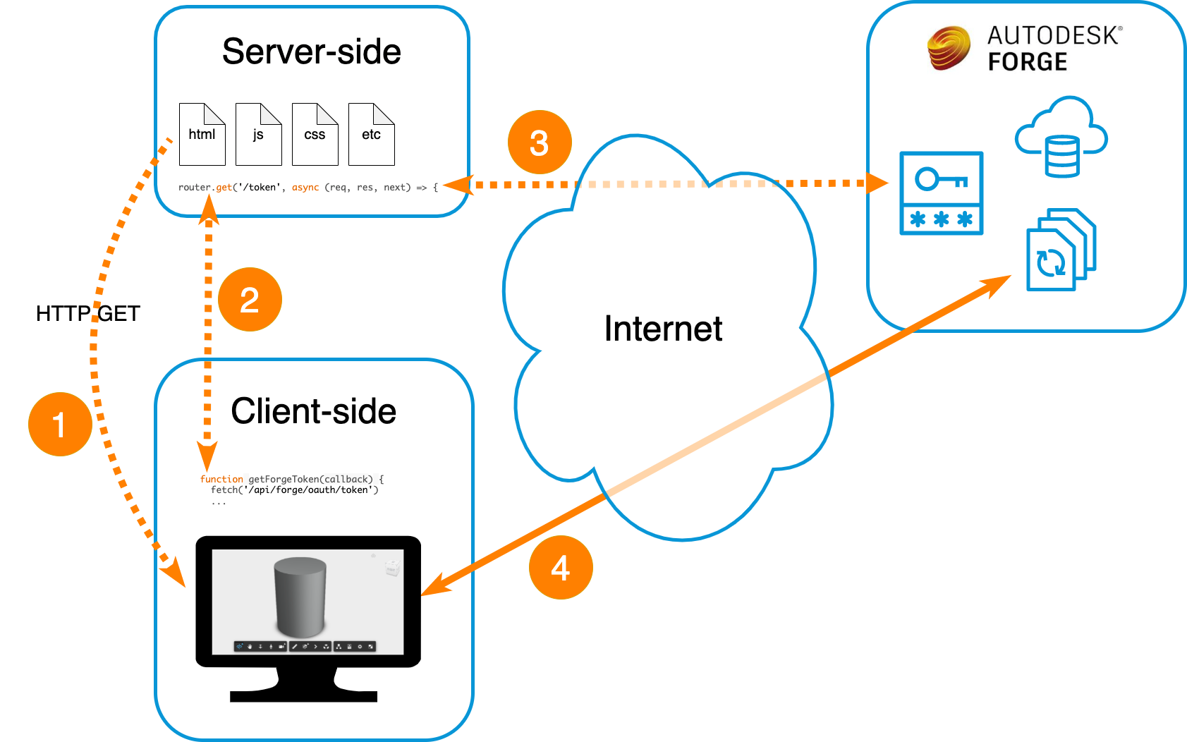当需要时,客户端代码将调用服务器 (2)上的一个端点,该端点进而到达Forge (3),并将结果传回给客户端。