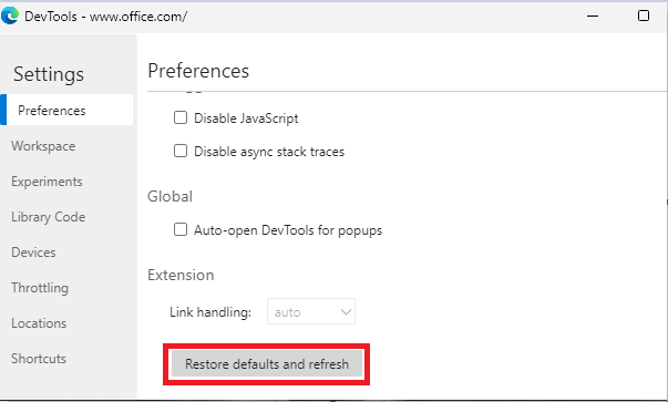 如果需要重置dev工具以还原Edge中的默认值,只需执行以下步骤: