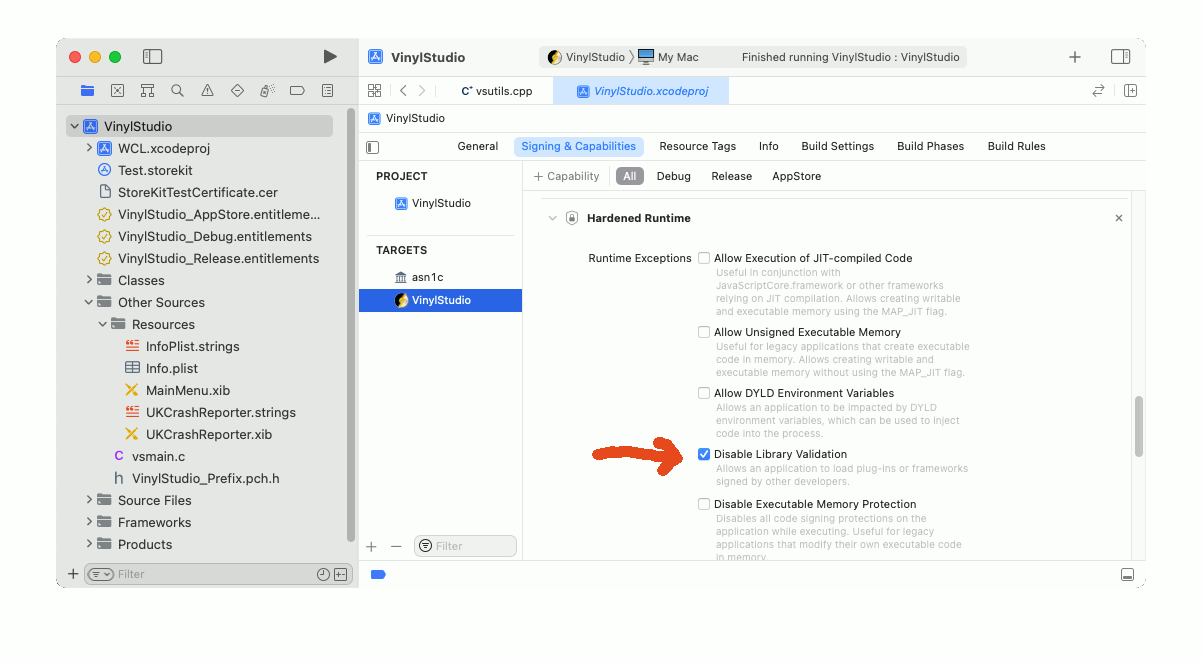 看起来你需要禁用库验证来加载你的应用程序库。苹果公司对在macOS上运行和不运行的内容越来越严格。