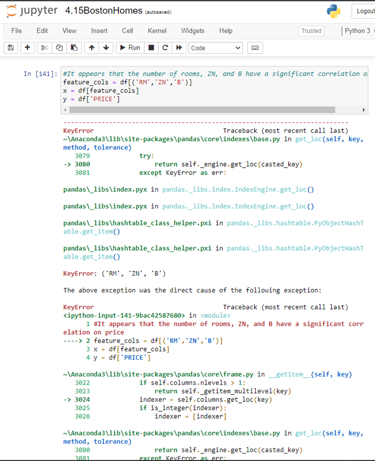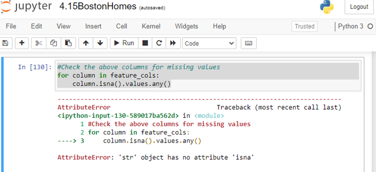 只是一个随机的q。如果有一个来自波士顿家庭ds的数据,df,我试图对其中的几个列进行EDA,设置为一个变量feature_cols,然后我可以用它来检查na,我们将如何处理呢?我有以下内容,它引发了一个错误:
