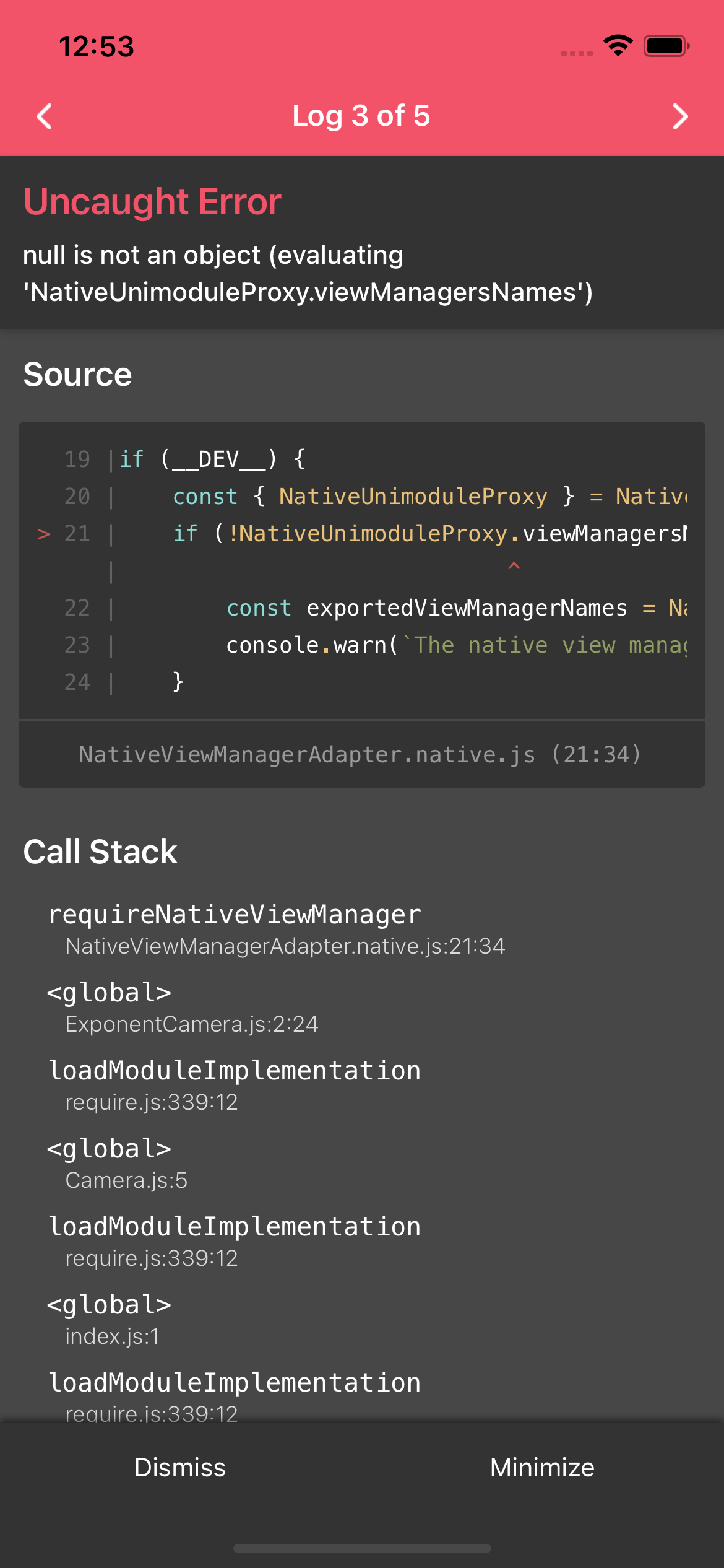 我认为问题可能在于,您将世博相机依赖作为开发依赖项。