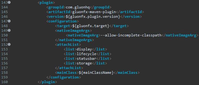 我发现的另一个问题是本机构建的自定义参数--allow-incomplete-classpath设置错误。它必须在plugin/configuration部分的“POM”中设置如下(已经引用的相同POM):