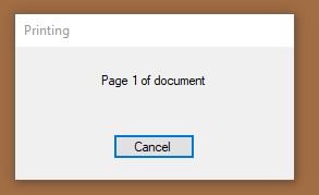 }我得到一个弹出显示“打印.第1页的文件”与取消按钮。它出现在我的一个显示器上看似随机的位置。