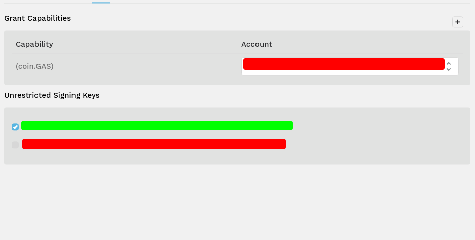 这似乎只是一个Chainweaver网络客户端的问题。在非web客户端上,您可以授予该功能并使用相同的密钥进行签名,而不存在任何问题。