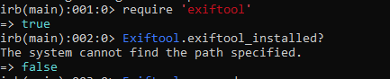 C:/Ruby27-x64/lib/ruby/gems/2.7.0/gems/exiftool-1.2.4/lib/exiftool.rb:60:in `initialize': Exiftool::ExiftoolNotInstalled (Exiftool::ExiftoolNotInstalled)