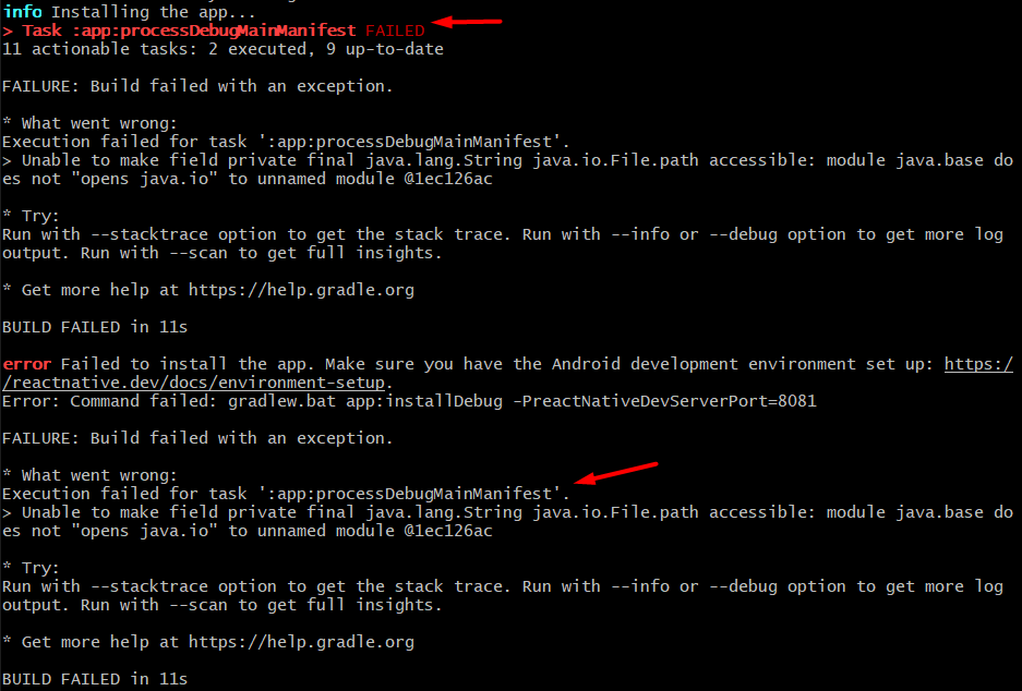 我使用的是jdk16,只需在/android/gradle.properties中添加一行即可!
