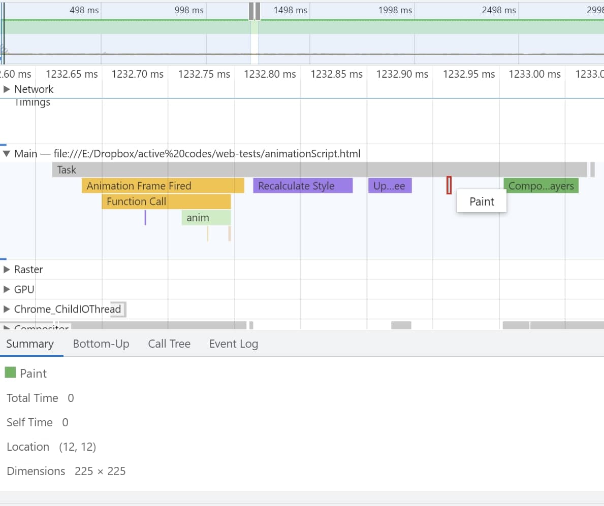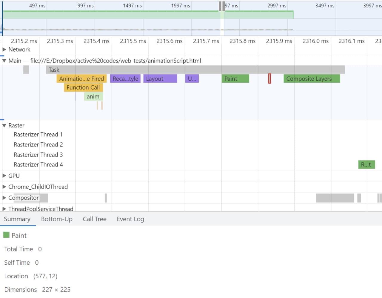 这让我感到困惑,因为我已经看到了这一个和这一个的来源,他们说当你使用transform/opacity时,油漆阶段已经结束了。那么这是什么呢?为什么我们在第一个例子中看到油漆,而在第二个例子中看不到?哪一个在撒谎?