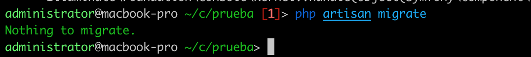php artisan migrate此时,我已经在我的数据库中创建了一个新的Laravel应用程序,并正确地创建了php artisan migrate表。