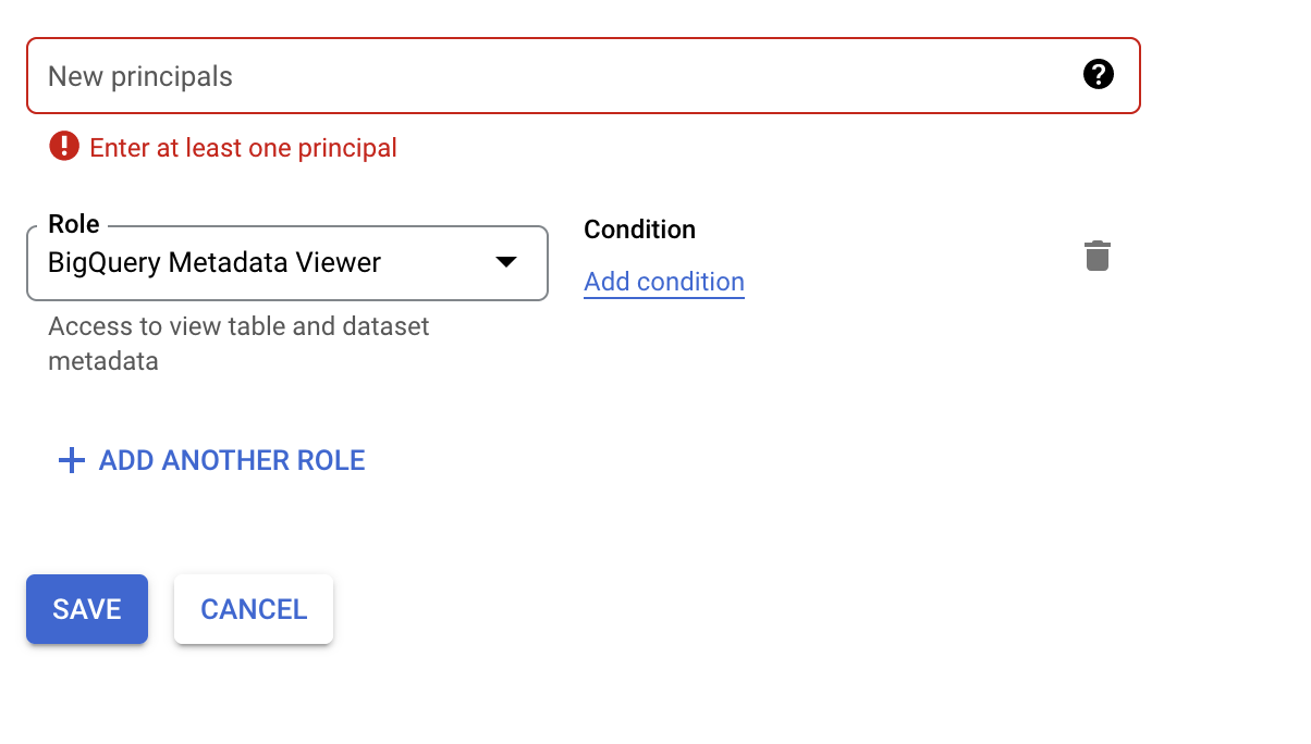 GRANT `roles/bigquery.metadataViewer`