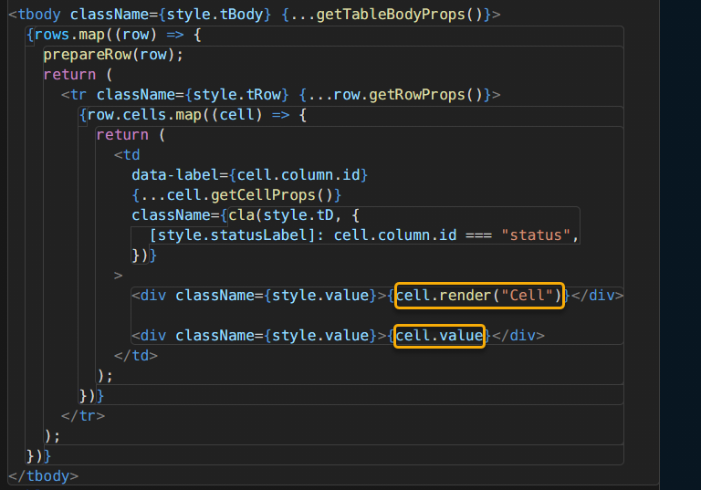 我用的是react-table包。我很困惑,当我只写cell.value的时候,cell.value有什么意义呢?我在浏览器中看到它以相同的方式呈现。那么,我为什么要使用第一个呢?