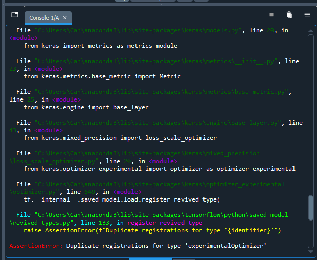 AssertionError: Duplicate registrations for type 'experimentalOptimizer'一些堆栈跟踪如下所示: