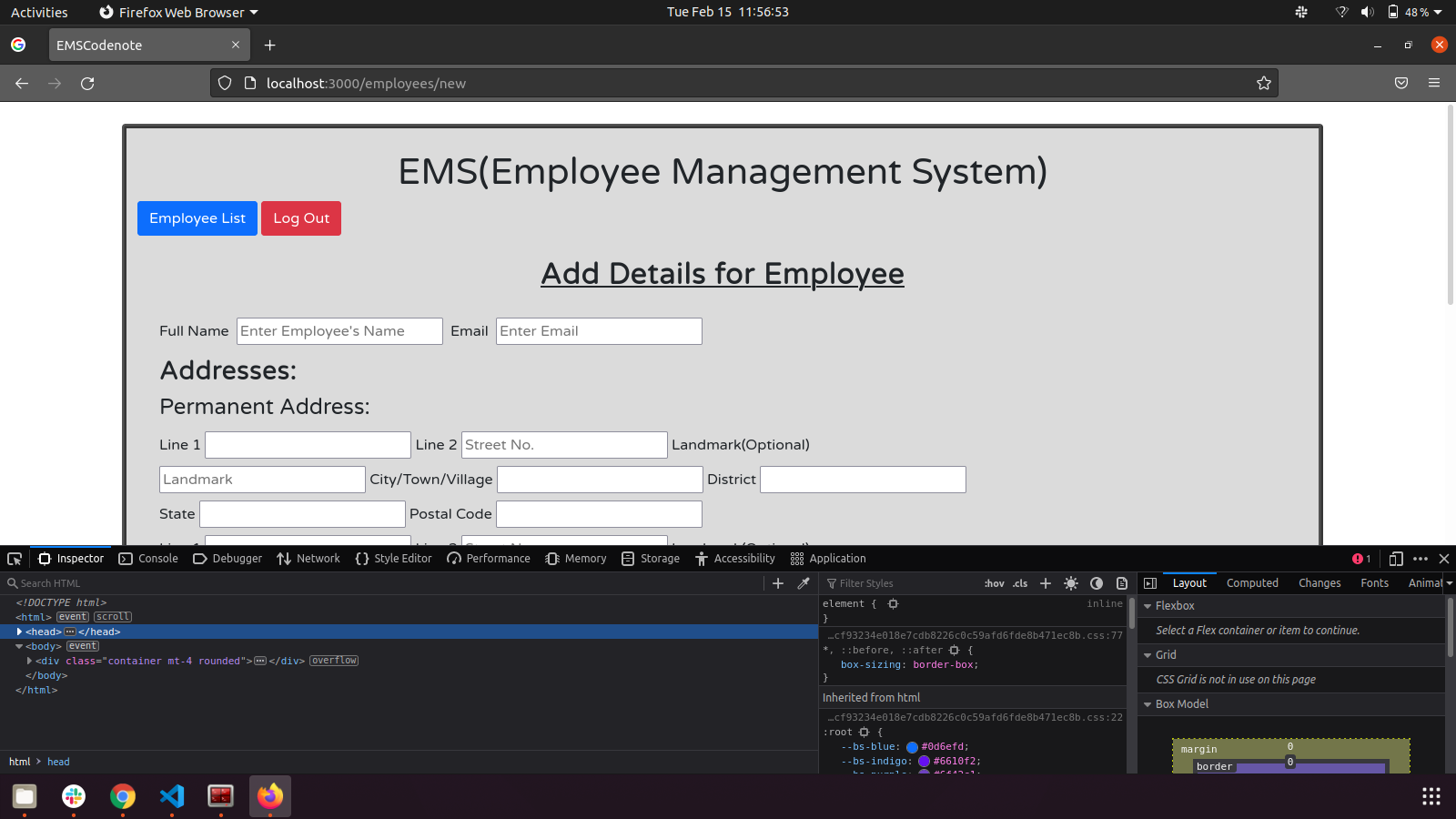 我正在使用Rails 7创建一个名为雇员管理系统的应用程序。要添加员工,我已经创建了一个表单。在这里,我已经使用嵌套表单字段gem添加了雇员的联系人。问题是,当第一次加载表单时,当我想添加或删除联系人字段时,它将重定向到相同的窗体。但是当我刷新页面时,它就开始工作了,没有任何问题。即使添加或删除的字段也会反映在数据库中。它只在第一次加载“创建或更新员工”页面时创建此问题。我所发现的是,当我单击该链接以添加员工并打开表单时。事件没有在html中加载。正如我们在下面的图片中看到的身体标签: