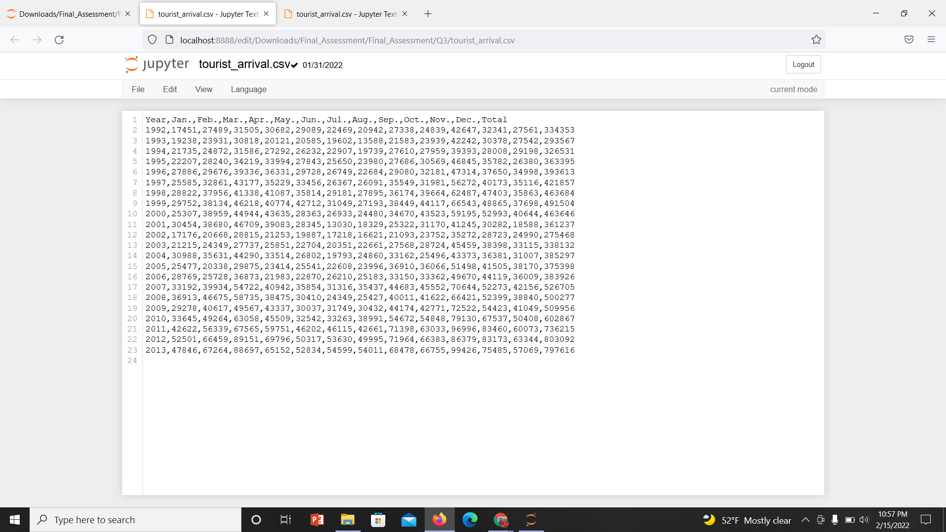 我试着从数据中找出最糟糕的五个月,但我对这个过程并不确定,因为我很困惑。答案应该是类似的(2001年6月,2002年7月),但当我试图解决它时,我的答案并不像预期的那样。只对一月份的数据进行了排序。这就是我试图解决我的问题和csv数据文件的方式也提供在屏幕截图上。
